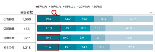 足元の住宅ローンの借入実態を把握するため本調査では、3大都市圏(首都圏、近畿圏、中京圏)とそれ以外(その他)の4つのエリアに分け、過去5年以内(2020年~2025年)に住宅ローンの借入を開始された方を対象に深堀りしています【図表2】。