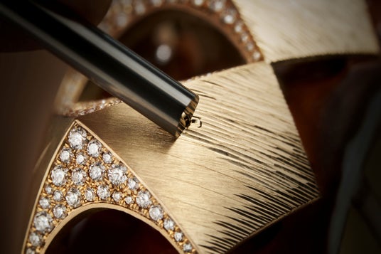 完璧な幾何学的デザインの輝く装飾、ゴールドの鮮やかな色合いと歴史が織り成すピアジェサンライトは、極めて貴重な素材に、唯一無二の輝きを与えます。