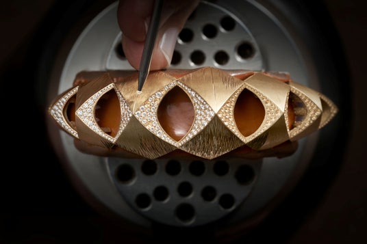 この色彩の躍動感の背景には、ゴールドで彩られた壮麗な曲線が広がり、力強いディテールを際立たせます。ハイジュエリー コレクションでは、指に優しくフィットする新感覚のダブルリングと、豪華なバングルが、ピアジェの物語に深いインスピレーションを与えています。手作業で精巧に仕上げられたラインは、ピアジェを象徴するゴールドのエングレービング技法「Decor Palace(パレス装飾)」の、グラフィックな十字模様を手作業で再現しており、メゾンのサヴォアフェールにオマージュを捧げています。この金細工の卓越した技術が、ジェムストーンの輝きを一層引き立てます。