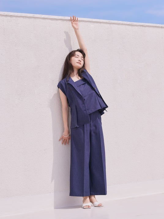 Denim-like Tailored Tucked Gilet : ¥22,000