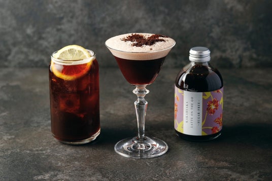 カフェラテベースを使用したザ・カハラ・ホテル&リゾートとのコラボレーションドリンク「エスプレッソマティーニ」と「コーヒートニック」。