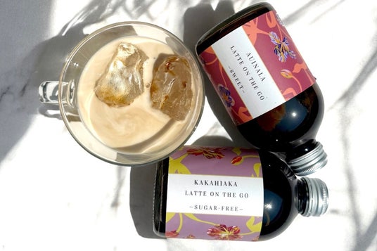人気のカフェラテベースは無糖の「KAKAHIAKA」、加糖の「AUINALA」の2種。ハワイ語でそれぞれ「お日さまが昇った」「午後のひととき」を意味し、味わう時間まで楽しんでほしいという想いが込められている。