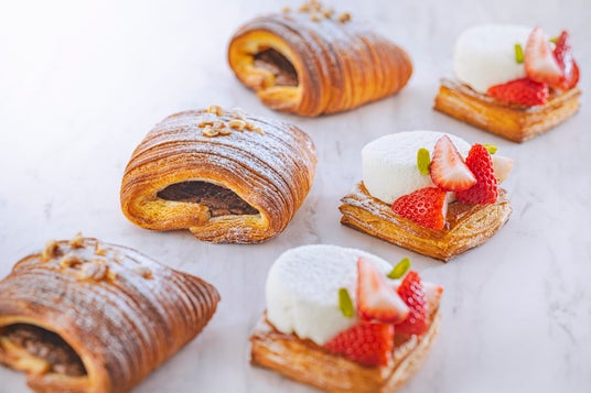 今回登場する新作は、昨年9月のリニューアルオープンを記念して誕生した進化系クロワッサン「パンスイス」の新バージョンと、淡雪のようにふんわりとした白いチーズクリームが印象的な新作デニッシュです。