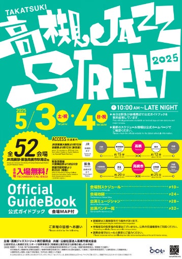 令和7年5月3日(土曜日・祝日)と4日(日曜日・祝日)に、高槻市内の全69会場で国内外から集結した約800組のアーティストによるライブ演奏が無料で楽しめる日本最大級の音楽フェス「第27回高槻ジャズストリート」「第7回富田ジャズストリート」が開催されます。