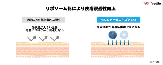 自治医科大学認定ベンチャーの株式会社テレバイオ(本社:東京都港区、代表取締役:吉村 浩太郎)は、株式会社日本触媒グループの最先端リポソーム技術を活用し、当社代表吉村浩太郎(自治医科大学 形成外科 教授)が開発したヒト脂肪幹細胞「セクレトームエキス(R)」※1 を内包した新しい化粧品原料「セクレトームエキス(R)Nano」を2025年4月29日より販売開始いたします。本製品は、PDI 0.15という極めて高い均一性を誇る多重層リポソームが、独自技術で浄化・高濃度化されたセクレトームエキス(R)を安定的に角層深部※2 へと届け、セクレトームエキス(R)の持つ優れた機能を最大限に活かします。