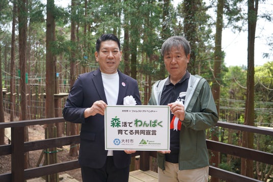 共同宣言に至った背景・目的フォレストアドベンチャーは単なるアウトドアパークではなく、自然共生型・地域共創型のアウトドアパークとして、観光や子どもの自然学習、企業の研修など「森を楽しむ」ことを通じて、その地域ならではのポテンシャルを活かし、地域が抱える課題の解決に取り組んでいます。また、大村市では第5次大村市総合計画・後期基本計画において、大村市の将来像を「~行きたい、働きたい、住み続けたい~しあわせ実感都市大村」とし、自身や家族の健康、趣味や生きがい、子どもたちの健やかな成長、家族の絆など「日常生活の様々な場面で、誰もがしあわせを実感できるまち」の実現を目指しています。