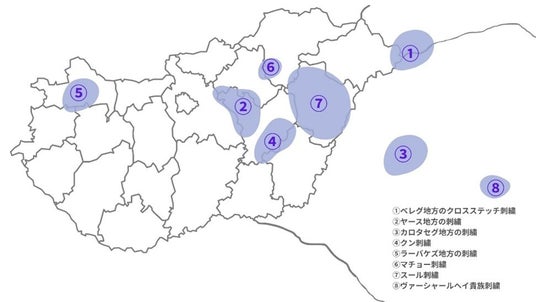 ZEMAのジュエリーは、ハンガリー各地に根づく刺繍文化から着想を得てデザインされています。インスピレーションの源となっているのは、ユネスコの無形文化遺産に登録されているマチョー、ベレグ、ヤース、カロタセグなどといった地域に伝わる伝統刺繍のモチーフたち。どれも色彩や造形に独自の美しさと意味を宿しており、ジュエリーの中に息づく“文化の記憶”とも言えます。本展では、こうした8つの地域の伝統刺繍をモチーフに施した磁器ジュエリーをご紹介いたします。