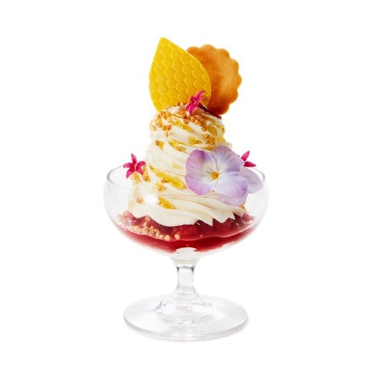 トップにはエディブルフラワーを添え、見た目にも華やかな一皿に。酸味と甘みが絶妙に調和する、まさに五感で味わうスイーツです。