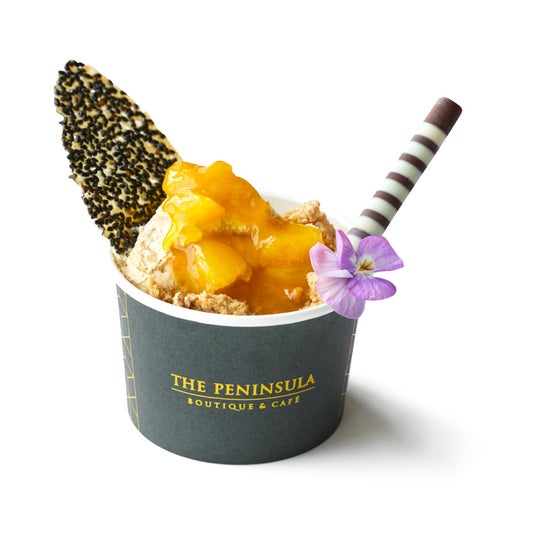 アールグレイアイスペニンシュラオリジナル、手摘みのアッサムを使ったアールグレイをじっくり抽出してアイスにしました。 オレンジマンゴーのソースと一緒にお楽しみください。