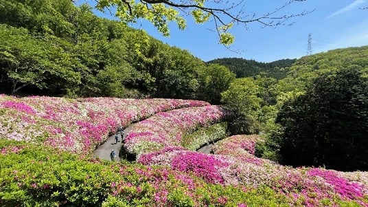 東大阪市の生駒山中腹に広がる「つつじ園」が、4月下旬からゴールデンウィークにかけて見ごろを迎えます。ハイキングコースの両側に約2,500株のヒラドツツジが山の斜面を鮮やかな白、紅、ピンク色に染め上げる光景はまさに圧巻。通称「ツツジロール」と呼ばれる大阪平野を背景に咲き誇る花のじゅうたんは、関西でも有数の“映えスポット”として注目されています。