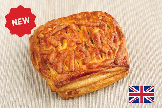 イギリス発祥の代表的な家庭料理「ミートパイ」を当店オリジナルにアレンジ。サクサクのデニッシュ生地にコクのあるフィリングと濃厚チーズソースをたっぷり包み焼き上げました。