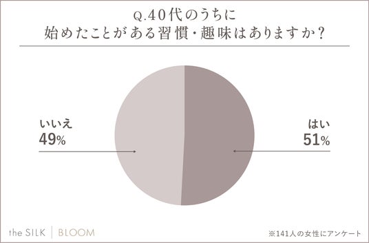 「40代のうちに始めた趣味や習慣があるか」という質問には、約半数(51%)が「はい」と回答していました。