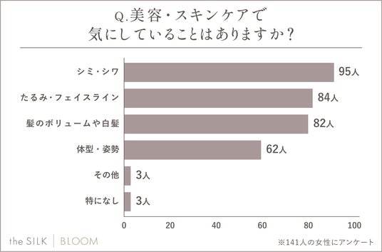 肌トラブルに直面した声が多く、中でも気になるポイントは「シミ・シワ」が最も多い結果となりました。