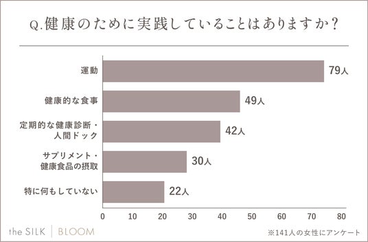 さらに、「健康のために実践していること」としては、以下のような回答が目立ちました。