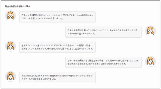老後の生活に備えて、収入が安定している40代のうちに対策を始めたという声が集まりました。