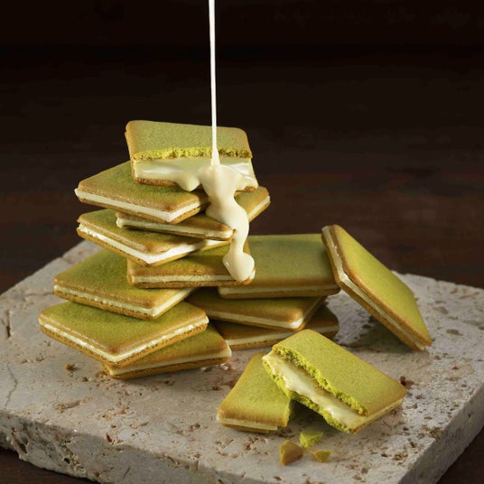 抹茶を使ったチョコレートをクッキーに挟んだお菓子です。