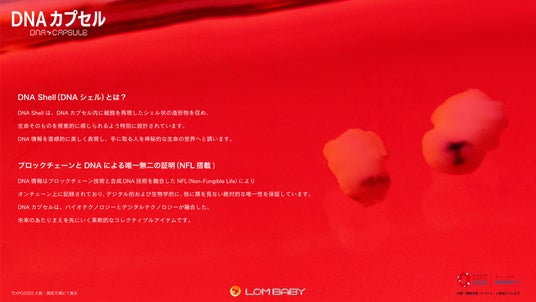 各フィギュアには固有のDNA情報が与えられ、実際に生成された合成DNA(実物)とブロックチェーン上のデジタル証明書を掛け合わせた新規格「Non-Fungible Life(NFL)」により、これまでの証明技術を超越した圧倒的な唯一無二性を証明することができます。