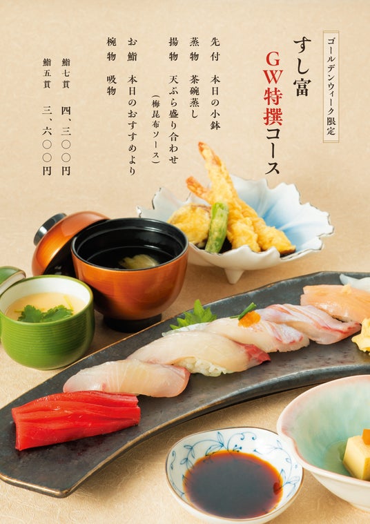 また同時に、ゴールデンウィーク限定で、「すし富GW特撰コース」も提供いたします。