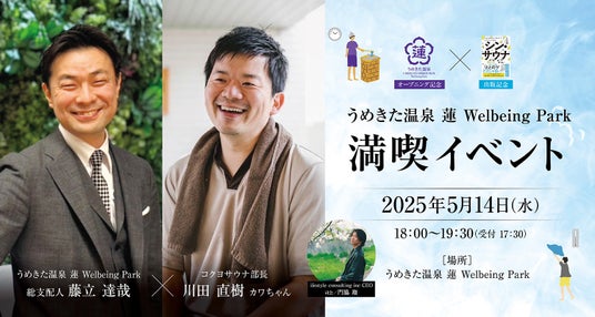 「うめきた温泉 蓮 Wellbeing Park」(総支配人:藤立 達哉、所在地:大阪市北区)は、ライフスタイルソリューションとしてサウナ事業を展開する「lifestyle consulting inc」(CEO:門脇 翔、所在地:大阪市西区)とともに、「うめきた温泉 蓮 Wellbeing Park満喫イベント」を開催することが決定したことをお知らせします。ウェルネス・ウェルビーイングをコンセプトとした健康増進施設ならではの、サウナを交えた新しい体験価値を訴求することで、関西のサウナコミュニティとの更なる相乗効果を見込みます。