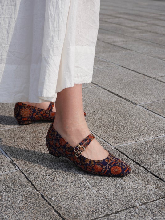 使われずに眠っている着物や帯をアップサイクルしたシューズを展開する<Relier81>