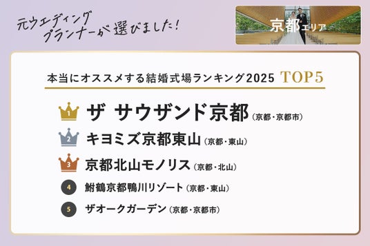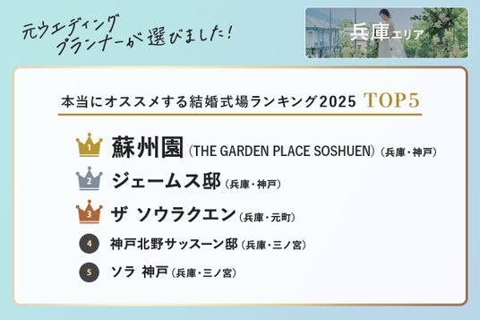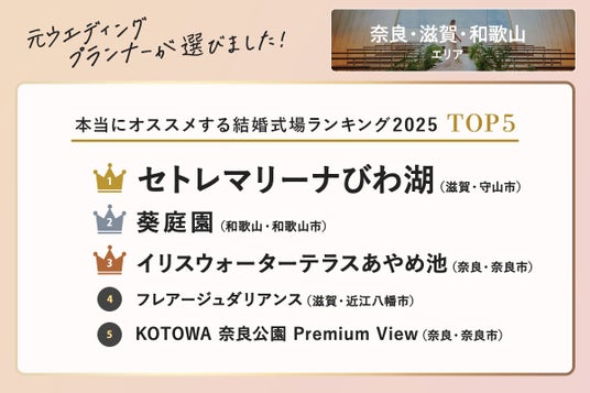 元ウエディングプランナーが選ぶ「本当にオススメする結婚式場ランキング<2025関西版>」を発表!“令和婚”らしい自由度とセンスを両立した、自分たちらしさが叶う式場が上位にランクイン
