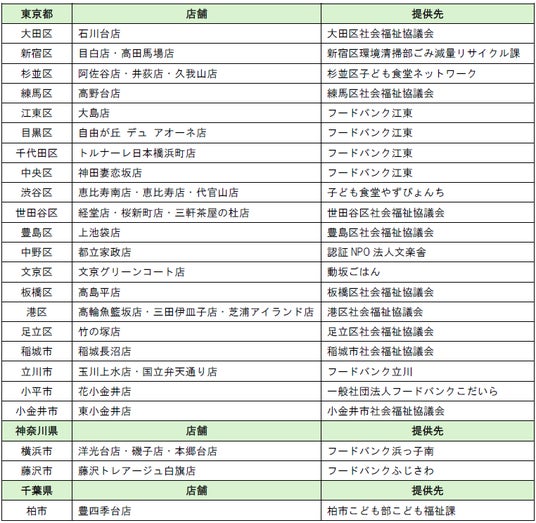 【フードドライブ 店舗・提供先一覧】