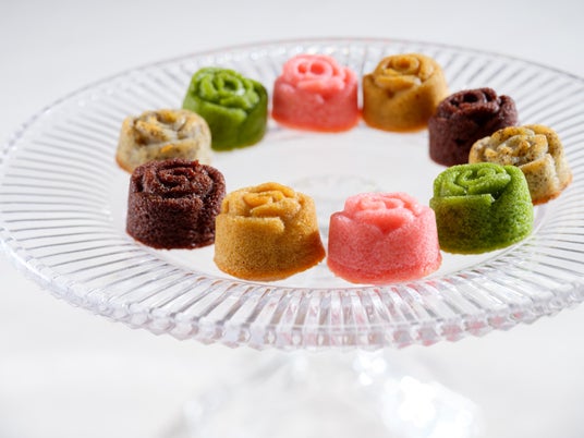 可憐なバラのフォルムが目を引く『ローズフィナンシェ』は、キャラメルや抹茶など5種のフレーバーが楽しめる、母の日の贈り物にふさわしい見た目にも華やかなひと口サイズのプティフール(小菓子)詰め合わせです。