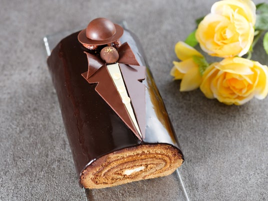 エスプレッソ香るモカクリームを包み込んだ『カフェモカロールケーキ』は、ほろ苦さが魅力の大人の味わい。タキシードに見立てたデコレーションが遊び心を添え、お父様への感謝を伝えるギフトに最適です。