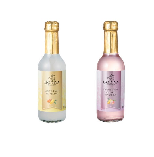 爽やかな味わいのゴディバ「カカオフルーツジュース」の炭酸飲料! 「カカオ フルーツ スパークリング」「カカオ フルーツ スパークリング ピーチ」