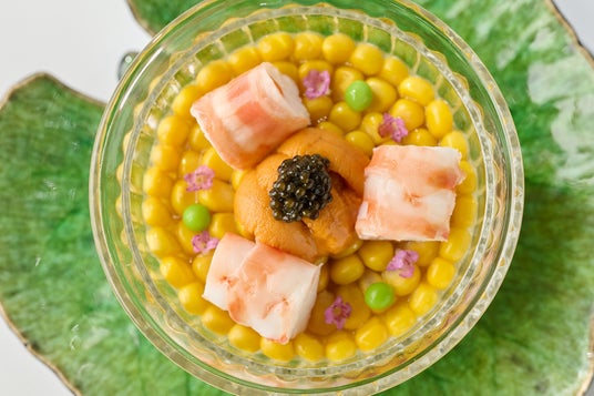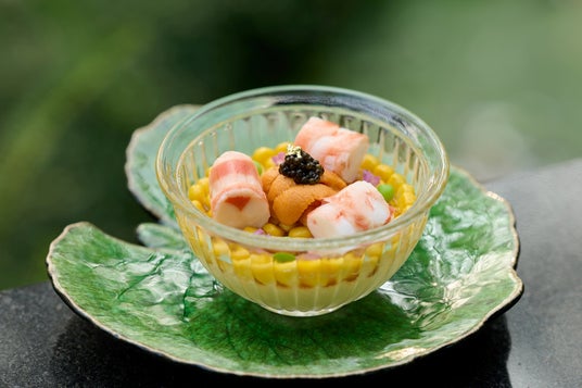現地食材と日本料理の技法を掛け合わせた「トウモロコシの玉地蒸」