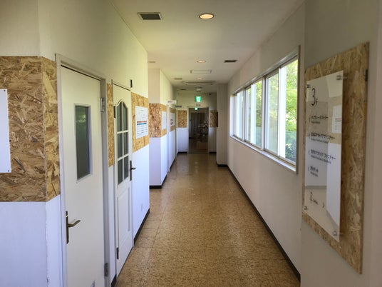 玄関ホール多目的ホール。講演、発表会、映像、ワークショップなど40人収容できる椅子がある。
