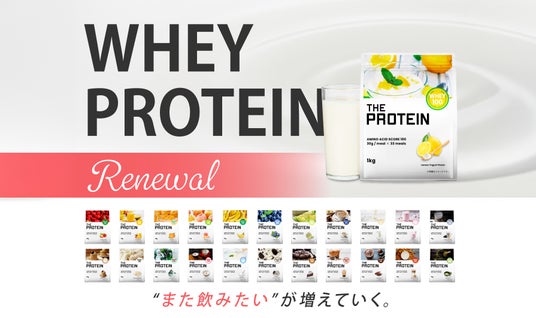 THE PROTEIN(通称:ザプロ)は、順次パッケージを新デザインに変更し、味をさらに美味しくリニューアルします。リニューアルに伴いザプロ公式LINE@にてホエイプロテイン対象のクーポンを配布