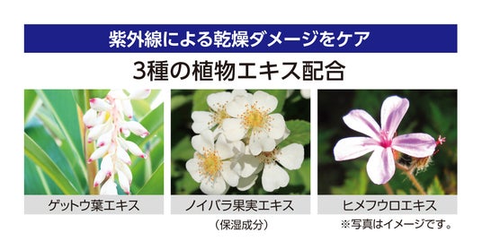 エイジングケア*²成分をふんだんに配合。さらに3種の植物エキスを配合し、メイクしながら紫外線による乾燥ダメージもケアします。