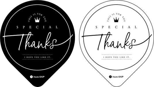 説明:「Thanks」の文字を大きくレイアウトしたシンプルなデザイン。色違いの2デザイン入り。