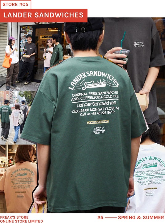 LANDER SANDWICHES×FREAK'S STOREバックプリント クルーネックTシャツ ¥4,499 tax in