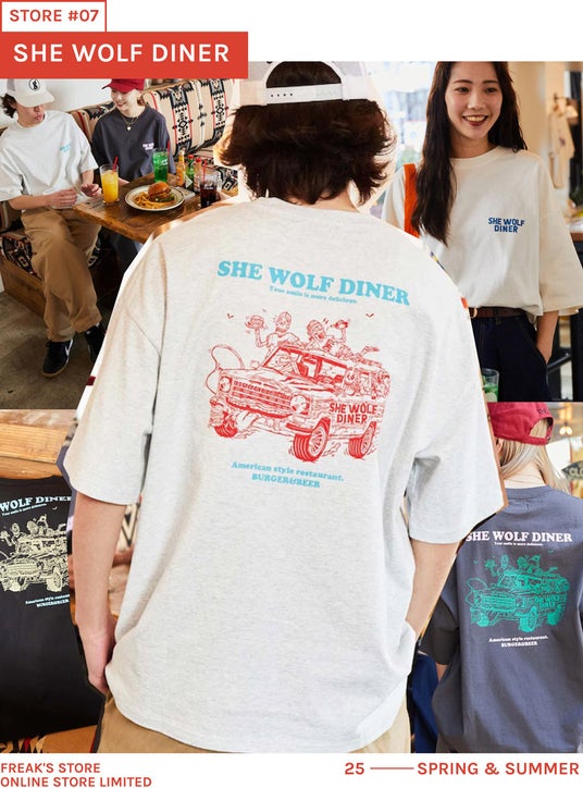 SHE WOLF DINER×FREAK'S STOREバックプリント クルーネックTシャツ/CAR ¥4,499 tax in