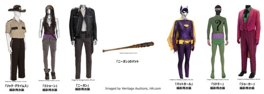 今回、ヘリテージ・オークションズのブースでは、大人気海外ドラマ『ウォーキング・デッド』の撮影で実際に使用された主人公「リック・グライムス」の衣装や日本刀を駆使する女剣士「ミショーン」や圧倒的な悪役として登場した「ニーガン」の衣装が展示されるほか、1960年代の『バットマン』テレビシリーズ(TCF TV、1966~1968年)でイヴォンヌ・クレイグが着用した「バットガール」撮影用衣装のほか、「ジョーカー」、「リドラー」の衣装も展示し、それらの衣装と共に撮影できるフォトスポットも設置します。