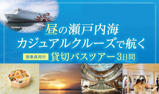 さんふらわあトラベル株式会社(社長:大西 康人、本社:大阪府大阪市住之江区)は、株式会社商船三井さんふらわあが運航する「昼の瀬戸内海カジュアルクルーズ」と観光をセットにした「昼の瀬戸内海カジュアルクルーズで航く 添乗員同行 貸切バスツアー3日間」プランを発売開始しました。