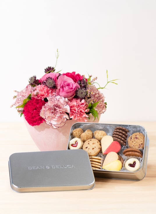 【母の日】DEAN & DELUCA アメリカンクッキー缶とバラとカーネーションのアレンジメント ピンク S 9,064円税込
