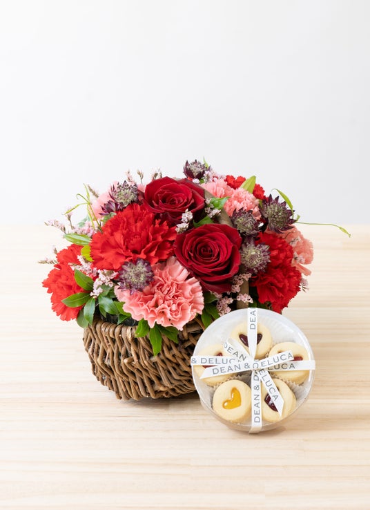 【母の日】DEAN & DELUCA ハートジャムサンドクッキーアソート10pcsとバラとカーネーションのアレンジメント レッド S 6,796円税込