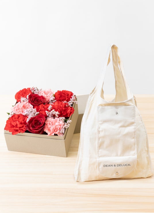 【母の日】DEAN & DELUCA ショッピングバッグ ナチュラルとカーネーションとバラのボックスフラワー レッド 7,260円税込