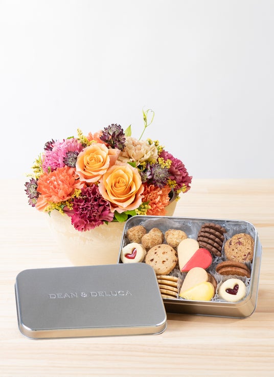 【母の日】DEAN & DELUCA アメリカンクッキー缶とバラとカーネーションのアレンジメント オレンジ S 9,064円税込