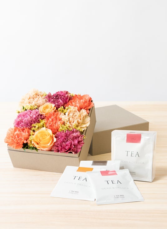 【母の日】DEAN & DELUCA ティーセレクション スイート6pcs 2025とカーネーションとバラのボックスフラワー オレンジ 6,742円税込