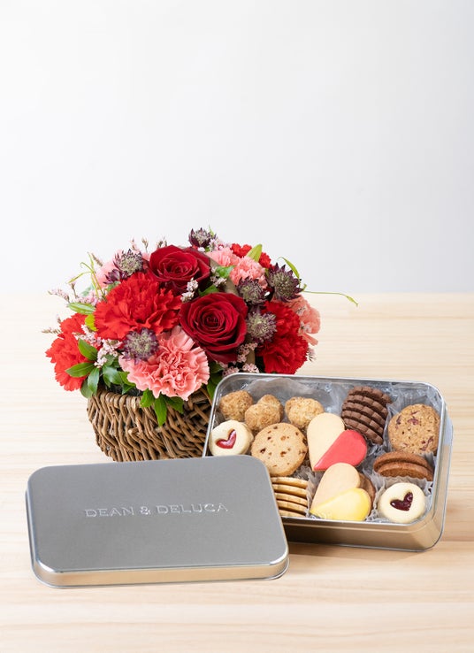 【母の日】DEAN & DELUCA アメリカンクッキー缶とバラとカーネーションのアレンジメント レッド S 9,064円税込