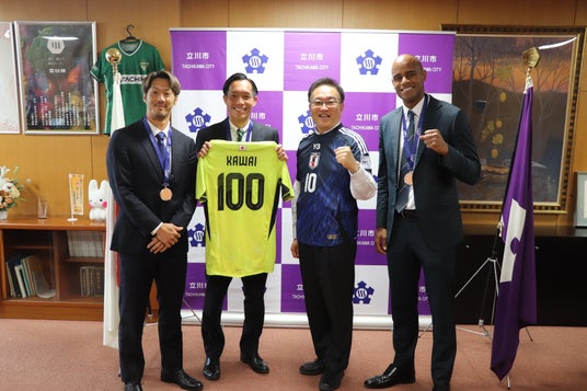 【東京都立川市】東京ヴェルディビーチサッカー茂怜羅オズ選手他4選手が立川市長を表敬訪問しました