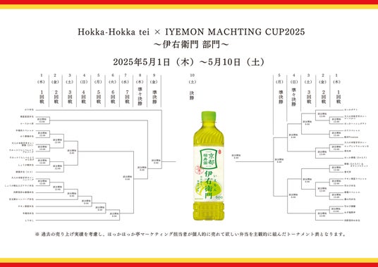 そこで、ほっかほっか亭店舗での取扱い開始を記念して、伊右衛門シリーズ各種に合うほっかほっか亭のお弁当を決める投票をXで実施いたします。 のり弁当をはじめとした、お弁当やおかずなど、計34メニューがXのアンケート機能を活用したトーナメント方式で日別に戦い、ナンバーワンを決定。「伊右衛門」「伊右衛門 ほうじ茶」「伊右衛門 玄米茶」のそれぞれに合う弁当を選出いたします。
