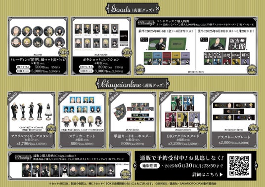 キャラクターグッズの商品企画・製作・販売を行う中外鉱業株式会社コンテンツ部は、「TVアニメ『SAKAMOTO DAYS』 × Chugai Grace Cafe【大阪店】」コラボカフェを開催します。