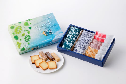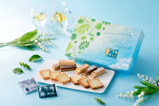 発売から49年を迎える「白い恋人」と、サクサク軽やかなパイが魅力のミルフィーユ菓子の新商品「美冬 こがれ雪」をひと箱に詰め合わせました。パッケージには、初夏から夏にかけての爽やかな空、そしてすずらんなど北海道の草花が描かれています。夏の北海道旅行や出張などのお土産にいかがでしょうか。●夏もおいしい新商品!「美冬 こがれ雪」を詰め合わせました!