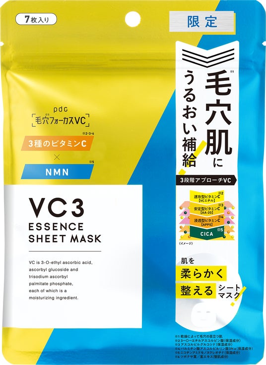株式会社pdc(本社:東京都港区、代表取締役:藤井 敬⼆)は、特徴が異なる3種のビタミンC誘導体*¹*²*³×CICA*⁴を配合した⽑⽳肌*ケアブランド「⽑⽳*フォーカスVC*¹*²*³」から話題の「NMN*⁵」を新配合した『VC3シートマスク N M』をウエルシアグループで数量限定発売いたします。