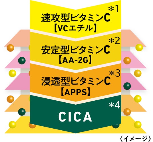 特徴が異なる3種のビタミンC誘導体*¹*²*³とCICA*⁴に加え、